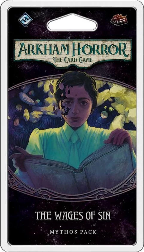 The Wages of Sin is the second Mythos Pack in The Circle Undone cycle for Arkham Horror: The Card Game.Following the events of The Secret Name, you have been forced to reconsider everything you thought you knew about life and death, sanity and madness. And the mists that hang over Arkham strike more fear into you than ever before. You must delve deeper into the city???s history of witchcraft and persecution if you wish to make sense of all you have seen. There have been reports of ghost sightings and strange activity in the woods the last few nights at Hangman???s Hill, and it is here you must journey to learn more about the witches who once hid in Arkham???s past???witches who have since emerged from the shadows in pursuit of some unholy purpose.When you step onto the hallowed ground of the graveyard, you may find yourself consumed by a feeling that the ghosts of the past are all around you, existing on some separate unseen plane. In??The Wages of Sin, the locations that you will investigate have two revealed sides, one that exists in the realm you know and one that takes you to the spectral plane. As you plumb the secrets of Hangman’s Hill, locations??may flip to their??Spectral??side, confronting you with a new set of terrors with a second encounter deck. While you are in a??Spectral??location, you will use the Spectral Encounter Deck instead of the normal encounter deck, and the dangers that surround you take on a more ghastly light. Will you be able to survive as you stand against the dead?This is not a standalone product. It requires a copy of the Arkham Horror: The Card Game Core Set and The Circle Undone deluxe expansion to play.