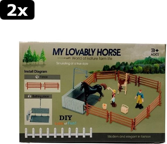 Speel de mooiste verhalen met deze Horse Club paarden speelset met weide en wasbox! Inhoud: hekjes, wasbox, paard, 2 speelfiguren, emmer, opruimbox en zadeldrager. Geschikt voor kinderen vanaf 3 jaar.