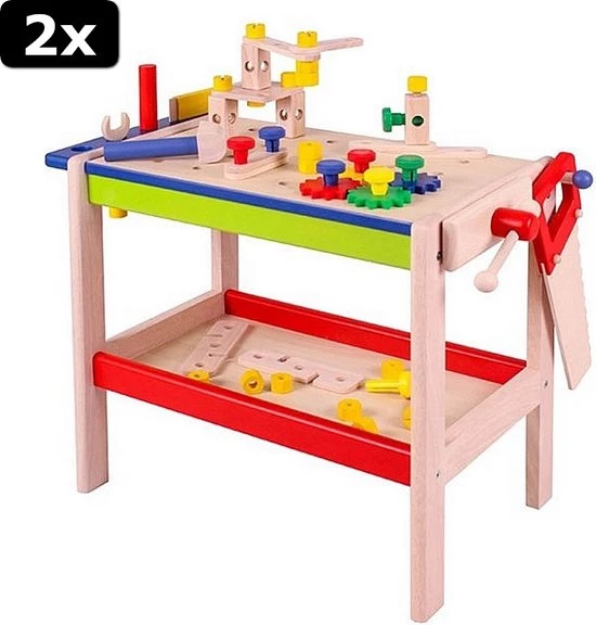 Een zeer degelijke werkbank, met alles er op en er aan. Voor elke knutselaar of bouwvakker in spe. Met gereedschap en accessoires. 52-delig. Geschikt voor kinderen vanaf 3 jaar.