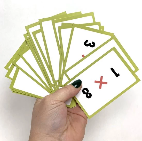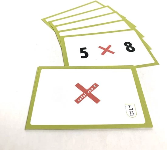 Met de tafelsomkaartjes kun je de tafelsommen, van de tafel van 8, op diverse manieren oefenen op een bewegende, speelse en actieve manier. Deze set bestaat uit 20 kaartjes: 10 kaartjes met de tafelsom en 10 kaartjes met de antwoorden van de tafelsommen. De tafelsomkaartjes worden in een doorzichtig, plastic doosje geleverd.