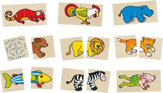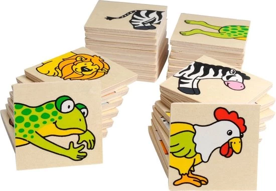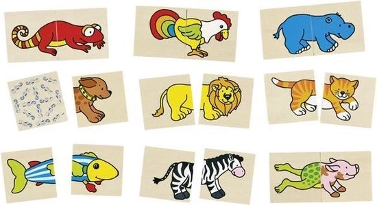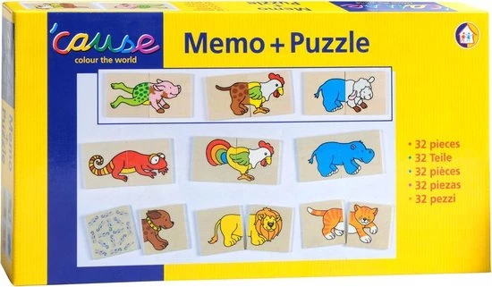 Leuke 32-delige Geheugenspel en puzzel set in opbergdoosje. Met 16 setjes houten Geheugenspel steentjes.