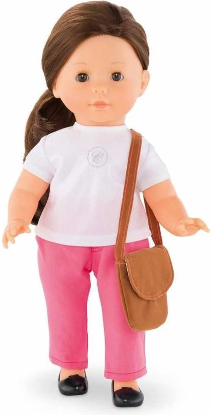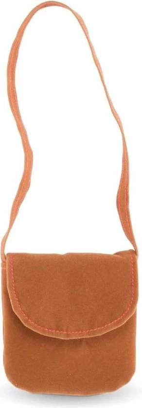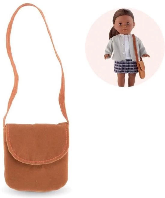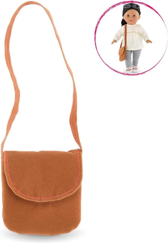 In deze leren bruine schoudertas kan jouw pop kleine accessoires kwijt als jullie samen op pad gaan. Het bruine tasje is versierd met roze stiksels, en kan gemakkelijk over de schouders gehangen worden.