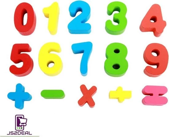houten stukken van 0-9, -, +, x, ÷ , = teken