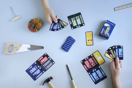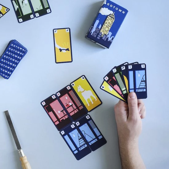 Bouw de hoogste toren in de stad, maar kijk uit – jij bent niet de enige die dit doet! Wie is een eerste van 5 hoog weet te bouwen wint het spel Gotown. Elke verdieping bestaat uit 2 verschillende kaarten die naast elkaar moeten liggen. Maar met speciale actiekaarten kun je de toren van je tegenspelers compleet de vernieling in helpen.