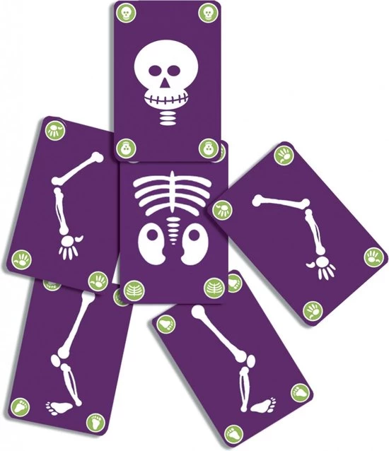 6 delen van een skelet vinden, wat een gekke uitdaging.. Maar let op gebroken botten. Een ruilspel met lichtgevende kaarten om zodoende ook in het donker te kunnen spelen.