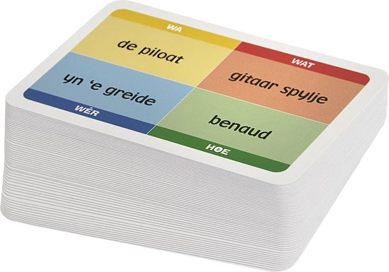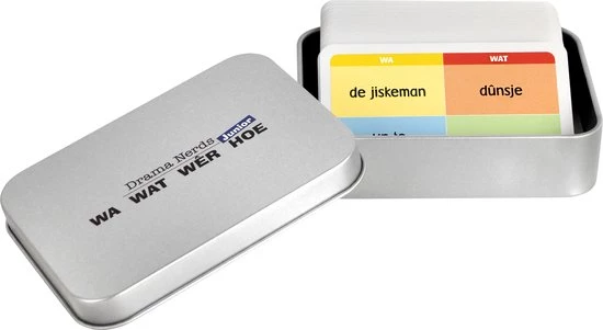 Nu ook in Friesland te spelen: WAWATW?RHOE Junior in het Fries. 55 kaartjes met in totaal 220 begrippen voor taalspelletjes, de dramales, om verhalen mee te maken of te gebruiken als inspiratie bij creatief schrijven. Kijk op www.dramanerds.nl wat je er allemaal mee kunt. Voor iedereen van 6/7 jaar en ouder.