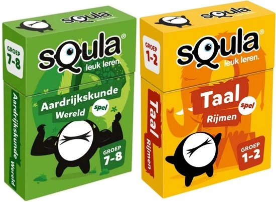 Met het Squla taal kaartspel ga je op zoek naar woorden die op elkaar rijmen. Je draait twee kaarten om en zoekt op elke kaart iets wat op elkaar rijmt, waarbij je je fantasie mag gebruiken. Er is dus niet ??n oplossing of ‘juiste’ combinatie maar er zijn juist vele mogelijkheden. Spaar zoveel mogelijk setjes en win! Geschikt voor groep 1 en 2.