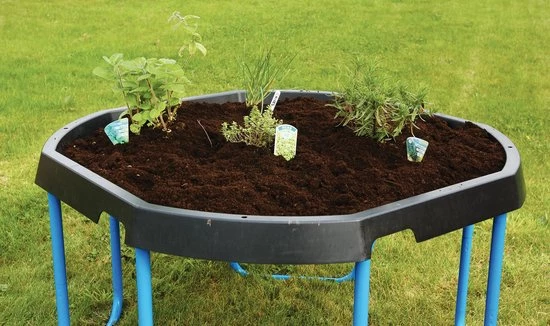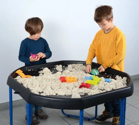 Deze ontdektafel kan op de vloer of een tafel worden geplaatst. Met de hoge oprand blijft het zand, steentjes, sensorische balletjes, water,… makkelijk in de tafel. Ook zeer geschikt om te gebruiken met het kinetisch zand. De ontdektafel kan gebruikt worden met bijhorende standaard. De standaard is in hoogte verstelbaar.