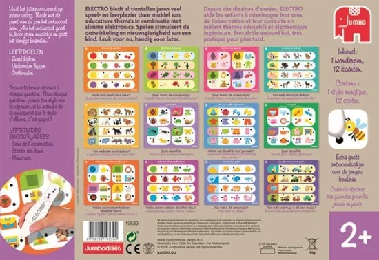 Electro van Jumbo biedt al tientallen jaren veel speel- en leerplezier door middel van educatieve thema’s in combinatie met slimme elektronica: een leuke manier om spelenderwijs te leren over kleuren, vormen, silhouetten, structuren en nog veel meer! Vind je kleintje dieren interessant? Dan raden we je Electro Wonderpen Ontdek De Dieren aan.