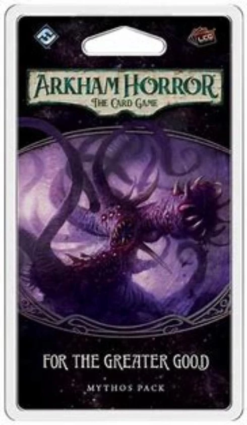 For The Greater Good is the third Mythos Pack in The Circle Undone cycle for Arkham Horror: The Card Game.Following the events of The Wages of Sin, you are disturbed to learn that there have been even more strange sightings in Arkham and worse, several more people have disappeared. You need help.Your relationship with the Order of the Silver Twilight cannot continue to balance on the edge of a knife. You must decide whether you will place your trust in them or count them among your enemies, and this decision will shape your adventure moving forward, determining your ties to the Lodge and which areas of the manor you will have access to.At first glance, several of the player cards featured in For the Greater Good may look familiar. In The Secret Name, the Arkham Horror LCG broke the boundary between player factions by introducing player cards like that belonged to multiple classes. Now, as your investigators continue to gain experience from their research into Arkham’s secret history, you will have the chance to upgrade these cards into more powerful versions that fit into classic, single-class categories. Each version of these upgraded cards feature distinct art pieces and abilities that play into the core focuses of their classes, growing with your investigators as their search for answers continue. Naam Speelduur Aantal spelers Leeftijd Uitgever Designer Soort Taal Taalonafhankelijk Ranking (BGG) Arkham Horror: The Card Game – For the Greater Good: Mythos Pack 60-120 1-2 14+ Fantasy Flight Games Cooperative Play, Deck / Pool Building, Hand Management, Variable Player Powers Engels Nee Not Ranked