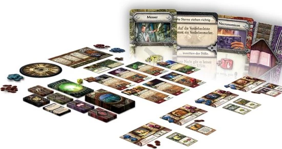 | Verpakkingsinhoud | 1, rulesheet, 3, Ancient, One, Cards, 8, Investigator, Cards, 64, Adventure, Cards, 1, Entrance, Card, 1, Track, Card, 1, Reference, Card, 5, Common, Item, Cards, 5, Unique, Item, Cards, 5, Spell, Cards, 5, Ally, Cards, 30, Mythos, Cards, 8, Investigator, Markers, 12, Monster, Markers, 28, Storm, Markers, 2, Supply, Tokens, 1, Day, Token |