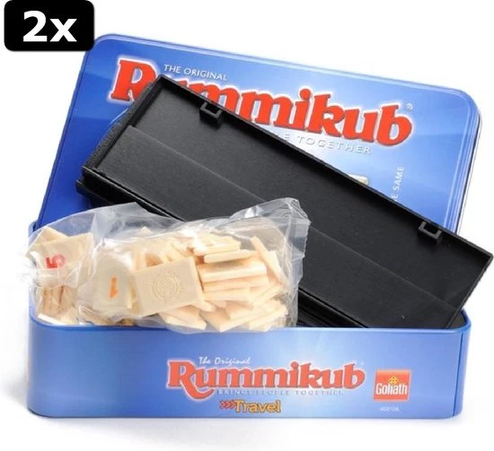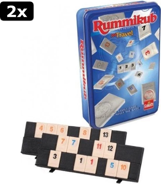 Rummikub is er nu ook voor op reis! Deze versie zit in een handig en stevig tinnen blik, zodat het spel onderweg goed opgeborgen blijft! Maak mooie cijferreeksen met de gekleurde cijfers op je plankje. Wie legt de slimste combinaties? Ben jij degene die het eerst alle cijfers op tafel heeft liggen? Een spel dat inzicht, durf en tactiek combineert.