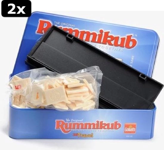 Rummikub is er nu ook voor op reis! Deze versie zit in een handig en stevig tinnen blik, zodat het spel onderweg goed opgeborgen blijft! Maak mooie cijferreeksen met de gekleurde cijfers op je plankje. Wie legt de slimste combinaties? Ben jij degene die het eerst alle cijfers op tafel heeft liggen? Een spel dat inzicht, durf en tactiek combineert.