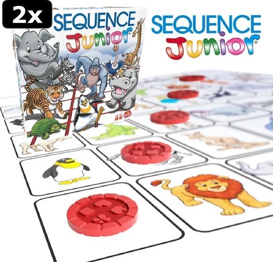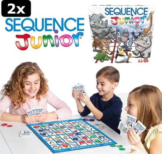 Sequence Junior kan al gespeeld worden vanaf 3 jaar. Op het speelbord zie je niet, zoals bij het familiespel, kaartsymbolen, maar er staan leuke illustraties van dieren op.