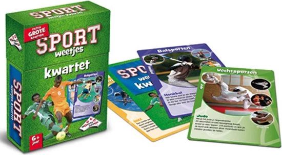 Met het Sport Weetjeskwartet leer je alles op verschillende sporten. Verzamel watersporten of racketsporten. Waar komt de rare puntentelling bij tennis vandaan? Welke Nederlandse wielrenners wonnen de Tour de France? Je komt er achter met het Sport Weetjeskwartet, het leukste kaartspel voor de hele familie.