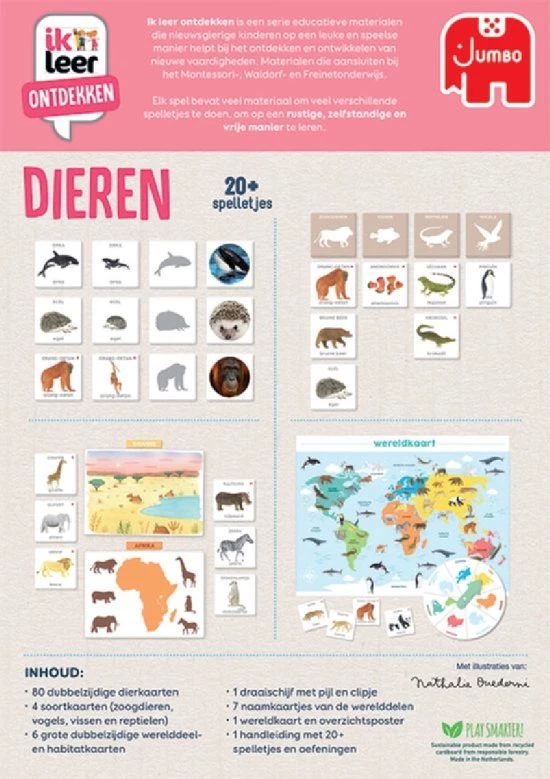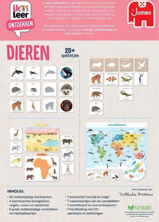 - 4 soortkaarten (zoogdieren, vogels, vissen en reptielen)
