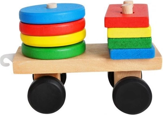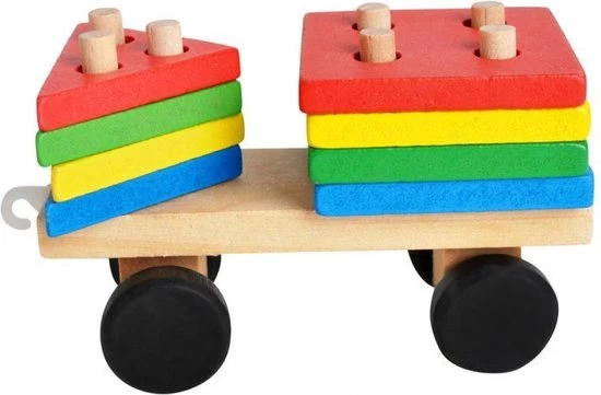 - SORTER – de wagons die aan de locomotief zijn bevestigd, zijn ook een sorteerder! Elke wagen heeft bouten waarop het kind de juiste blokvormen aanpast . Het wiel heeft 1 pen, een rechthoek 2, een driehoek 3 en een vierkante 4 pennen.
