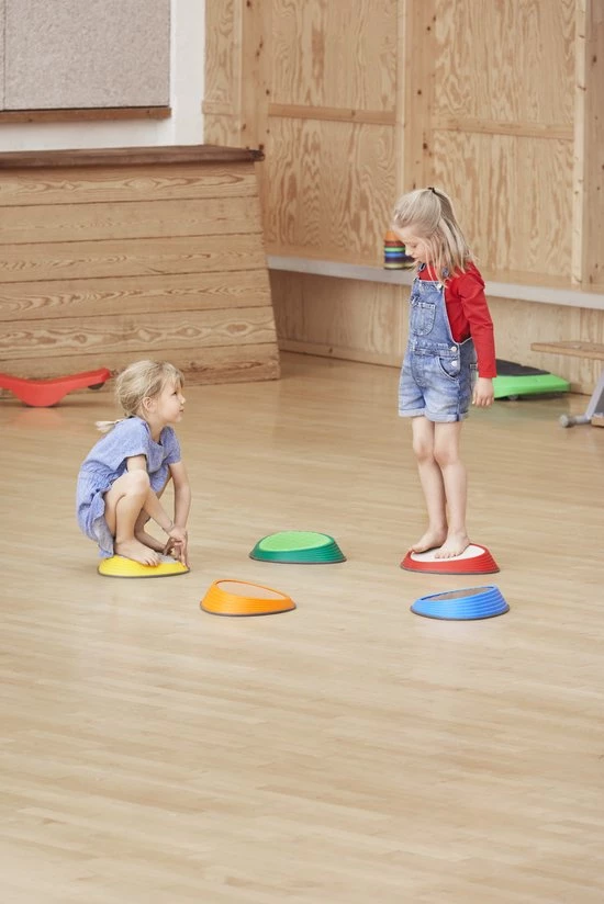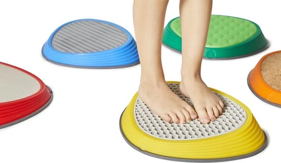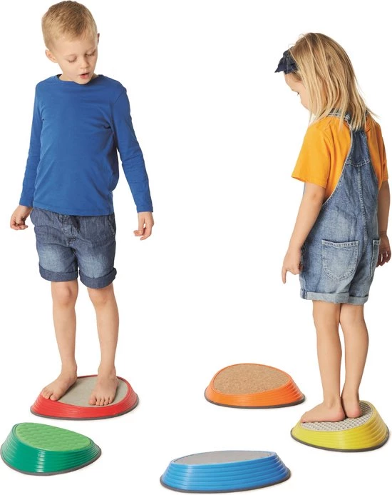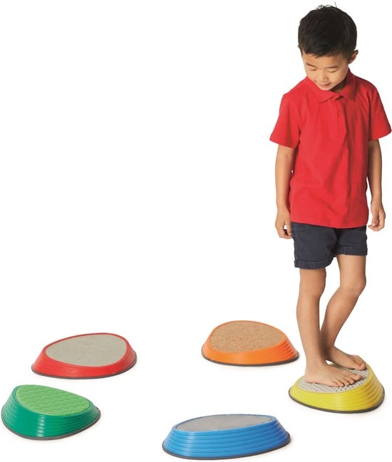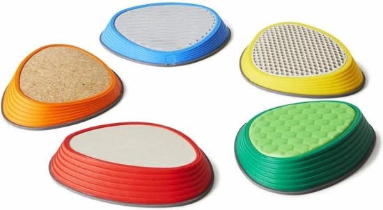 Deze 5 tactiele rivierstenen zijn ge?nspireerd op de rivierstenen waarbij elke zijde van de driehoek varieert in steilheid en moeilijkheidsgraad. Het doel is om van steen naar steen te springen zonder de vloer aan te raken – u kunt de positie van de stenen vari?ren om meer uitdagende paden voor kinderen te cre?ren. Elke steen heeft een rubberen rand aan de basis die voorkomt dat ze wegglijden, actief en fantasierijke plezier. Bouwt het vertrouwen van kinderen op tijdens het springen, het beoordelen van afstand, co?rdiren en balanceren. Verbeterd ontwerp van de originele Rivierstenen.
