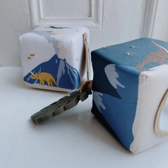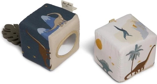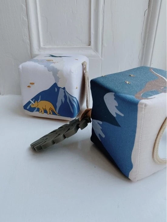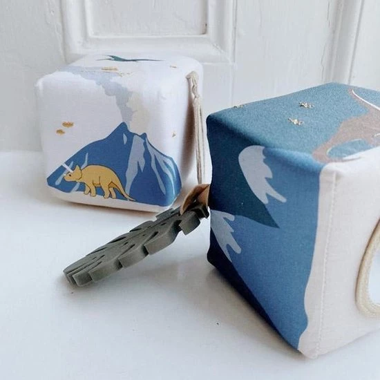 Jouw baby heeft genoeg speelplezier met deze te gekke dino speelblokken! Aan een speelblok zit een siliconen blad om op te bijten, fijn voor de doorkomende tandjes! De blokken hebben verder nog te gekke illustraties, spiegels, een belletje die je hoort rinkelen wanneer het speelblok wordt geschud, een knisperstofje en borduurpatronen. Allemaal om alle zintuigen van je kindje te stimuleren.
