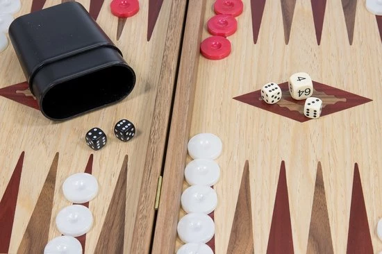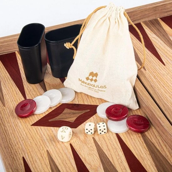 Deze backgammon is handgemaakt met de kunst van inlegwerk (ook wel gespeld als marqueterie), wat de kunst en het ambacht is om fineerstukken op een structuur aan te brengen om decoratieve patronen en ontwerpen te vormen. Onze bekwame arbeiders gebruiken deze methode om het binnenontwerp van de backgammon te creëren.