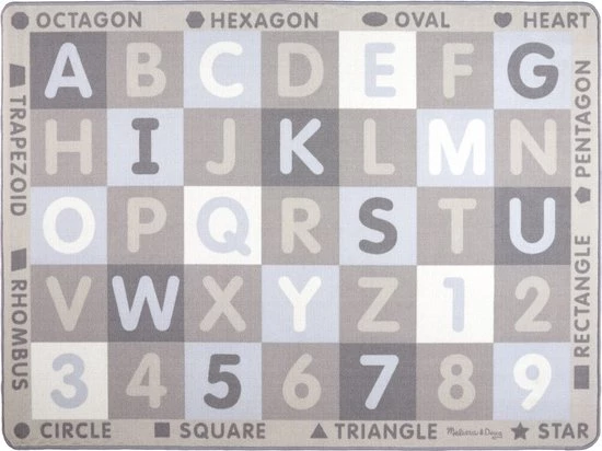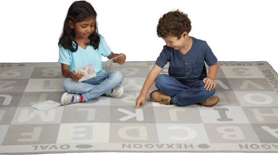 Kinderen zullen enorm veel plezier beleven aan het ontdekken en leren van het alfabet, cijfers en vormen op het neutraal gekleurde Jumbo ABC-123 vloerkleed! Er is veel speelruimte op het duurzame en zachte vloerkleed om bijpassende spellen te spelen met de set van 36 dubbelzijdige spelkaarten. Er zijn afbeeldingen met elke letter van het alfabet en de cijfers één tot en met negen, en de rand bevat 12 vormen en vormnamen. Dit multifunctionele vloerkleed is gemaakt van duurzaam materiaal dat ongelooflijk zacht aanvoelt voor extra comfortabel spelen en heeft een slipvaste achterkant en versterkte randbinding. Het tapijt meet 147x200cm.