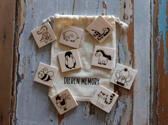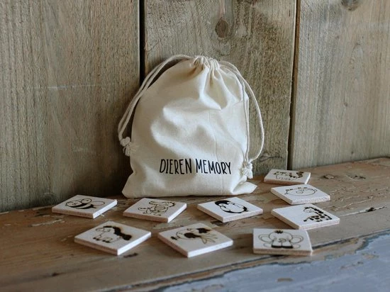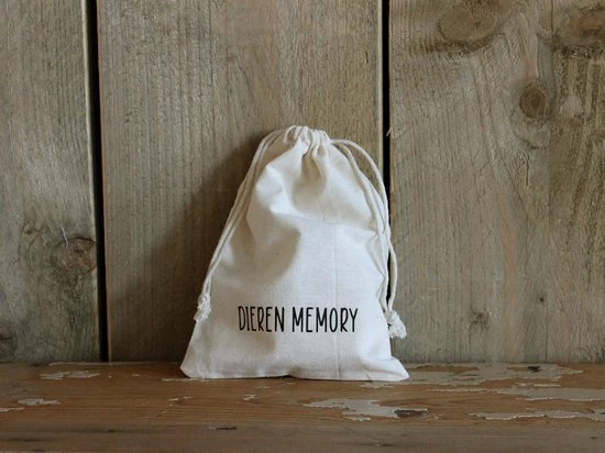 De dieren memory wordt geleverd in een katoenen zakje, waardoor je het gemakkelijk kunt opbergen.