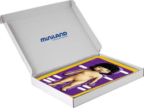 Miniland Primary Deze leerpuzzels van Miniland moedigen kinderen aan tot het herkennen van het menselijk lichaam. Plaats de puzzelstukken op de juiste plaats in de houder en controleer of de afbeelding juist is. Benoem de ledematen en organen van de jongen en het meisje op de puzzel met de bijgeleverde stroken. Miniland stimuleert rangschikken en herkenning! Specificaties: Kleur: rood/groen, geel/paars Materiaal: kunststof Geslacht: junior Leerthema: menselijk lichaam Taal: Frans, Duits, Engels, Spaans, Italiaans, Portugees Aantal stukjes per puzzel: 20 Afmetingen puzzel: 36 x 26 cm (LxB) Leeftijd: 3-6 jaar Inhoud: 2 Leerpuzzels met houder