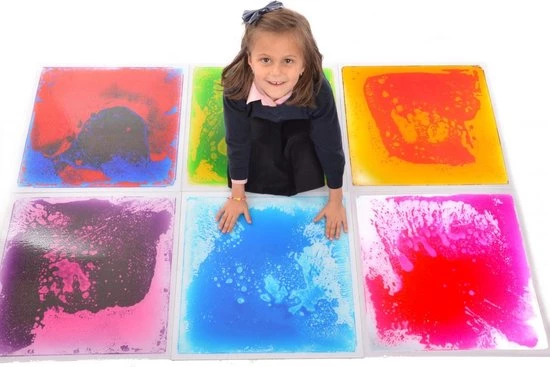 Een prachtige visuele en tactiele ervaring die je echt zal aanmoedigen om te bewegen en de oppervlakken te verkennen. Ideaal voor gebruik in sensorische kamers of omgevingen, de felle kleuren en steeds veranderende vormen stimuleren visuele stimulatie, evenals beweging en aanraking. Elke tegel is gevuld met een vloeibare gel, zodat elke stap of beweging ervoor zorgt dat de vloeibare gel in een reeks patronen verschuift.