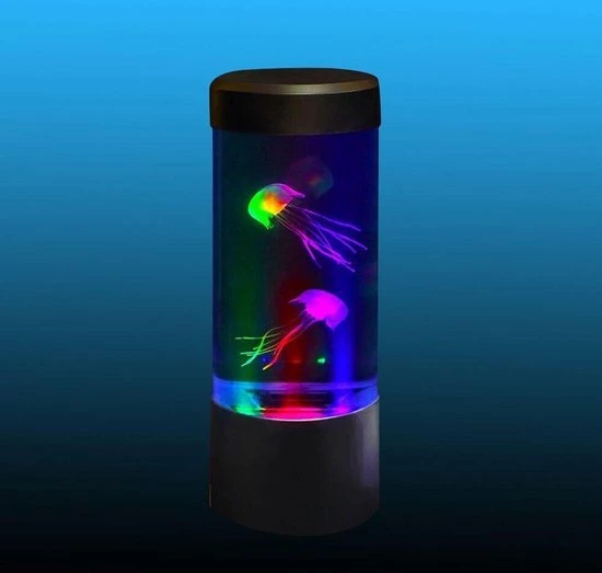 Dit is de ideale lamp voor alle situaties, als middelpunt op je tafel, op je bureau of op je nachtkastje. Waar het ook gaat, het zal zeker aandacht krijgen. Deze sfeervolle sfeerlamp heeft twee kleine kwallen die ronddobberen en twee LED-lampjes, blauw, groen en rood, die ze verlichten terwijl ze drijven.