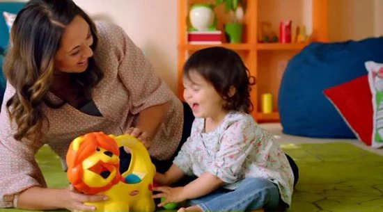 De Tel en Speel-Leeuw leert je kind tot 10 tellen in het Nederlands, Engels, Frans en zelfs in het Italiaans! Verder biedt deze leeuw je kind een aantal spel-activiteiten. Stop het balletje in de buik van de leeuw, druk dan op zijn staart en het balletje begint te rollen. Met licht en geluid! Vanaf 9 maanden.