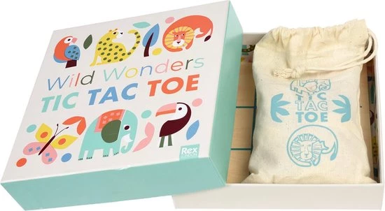 Leer boter, kaas en eieren spelen met de olifant en de leeuw uit ons Wild Wonders design. Met dit handige houten strategiespel nemen de olifant en de leeuw het tegen elkaar op om als eerste drie op een rij op het speelbord te krijgen. Speelplezier boordevol actie voor jong en oud! Wie heeft als eerste tic-tac-toe?