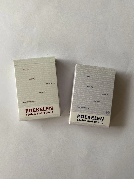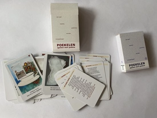 Poekelen is een kaartspel met 26 kaarten met kunstwerken (en 1 dichtregel) en 26 kaarten met gedichten en 3 uitlegkaarten.