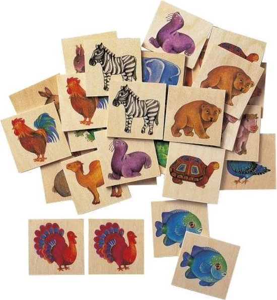 Urenlang speelplezier met memorie van Selecta, in het thema dieren. Leg alle plankjes willekeurig neer met het diertje naar beneden. Probeer hetzelfde diertje te vinden. Verzamel zo snel mogelijk zo veel mogelijk dubbele dieren.