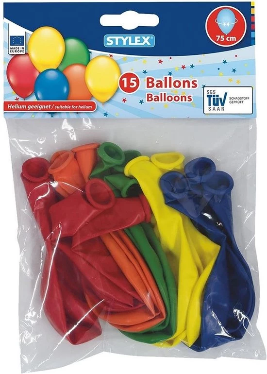 Stylex helium ballonnen van 75 cm groot, 15 stuks