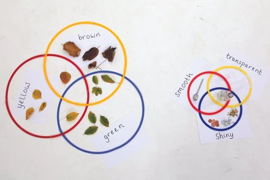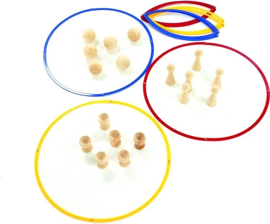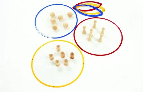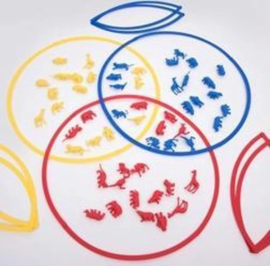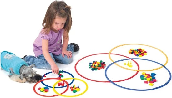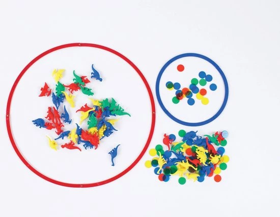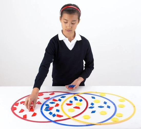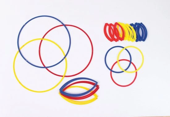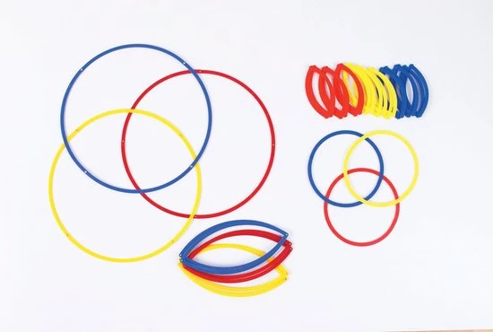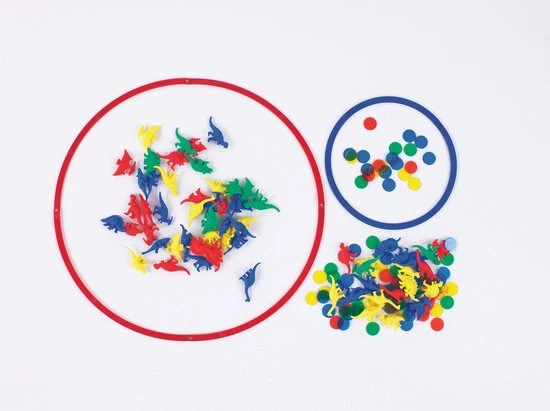 A set of folding sorting rings to help children classify and count objects. Use singularly or create Venn diagrams for sorting, comparing and attribute work. Set of 6 in 3 colours.