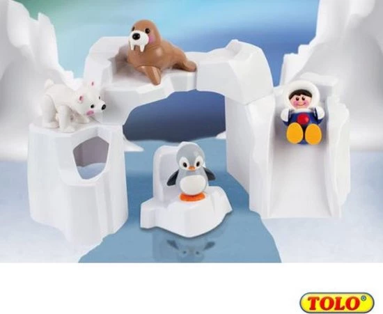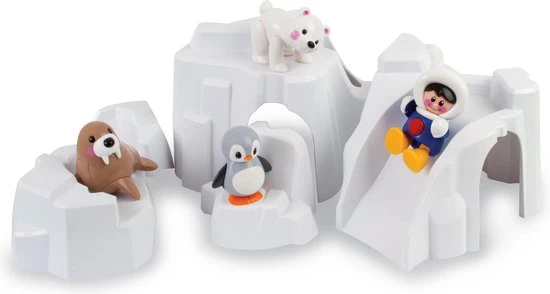 Dit het hoofdstuk van de First Friends Noordpool thema! De ijsberg bestaat uit 4 onderdelen die ook los van elkaar te gebruiken zijn. De set is uitgerust met een glijbaan, grotten en een extra rotsachtige kap die kan worden gebruikt om twee delen aan elkaar te bevestigen. Alle First Friends voertuigen passen door de tunnel. Inclusief Pingu?n, IJsbeer Eskimo jongen en Walrus. Met de overige delen en karakters van dit thema kunnen kinderen een hele Noordpool bouwen rondom de ijsberg. Stimuleert het fantasiespel.