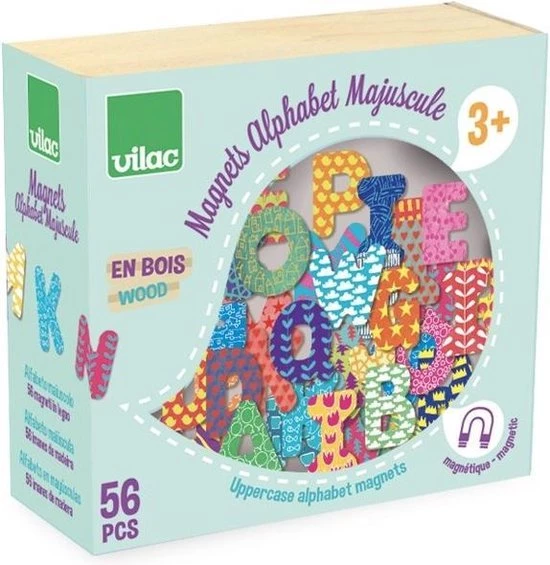 Kan jij je naam al schrijven? Zo leuk deze set van 56 hoofdletters in hout van Vilac. Je maakt zelf je eerste woordjes en hangt ze op de koelkast. De hoofdletters zijn ongeveer 4cm hoog.