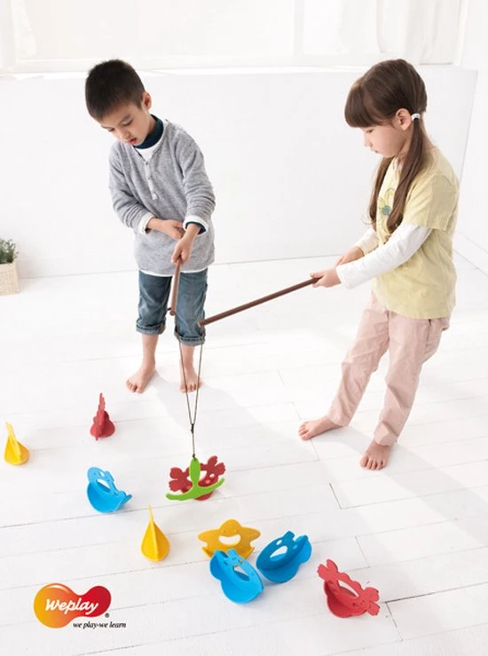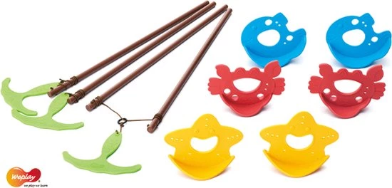 Samen vissen wordt nog leuker met de dubbele hengel. Liefdevol ontworpen zeedieren spreken kinderen aan, en de figuren kunnen zelfs op het water zwemmen. Bij het vangen van de 3 verschillende zeedieren wordt het richten in de zwaaibeweging aangemoedigd. Door het unieke ontwerp van de haken kunnen er meerdere zeedieren tegelijk worden gevangen. De visgaten in de afzonderlijke motieven zijn anders gevormd, wat betekent dat het haken van verschillende moeilijkheidsgraad is. Inhoud: 2x vissen, 2x krabben, 2x zeester, 2x haken, 2x enkele hengels, 1x dubbele hengel.