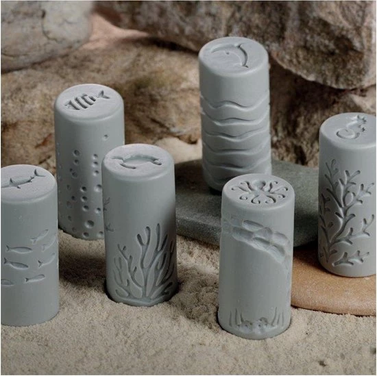 Druk en rol eenvoudig in speeldeeg of klei en stempel met de rollers om prachtige taferelen te maken. Experimenteer met verschillende druk en je kunt ook op verschillende manieren rollen.